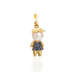 Pingente de Ouro 18k Menino com Pérola e 10 Safiras pi19937